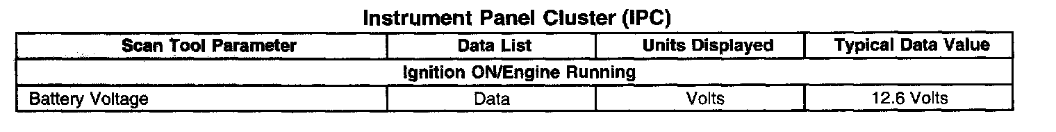 Normal Scan Tool Data Values - Instrument Panel Cluster (IPC)