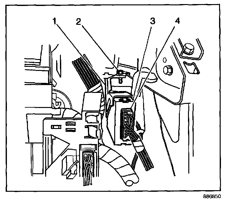 4. Connect the theft deterrent module electrical connector (4).