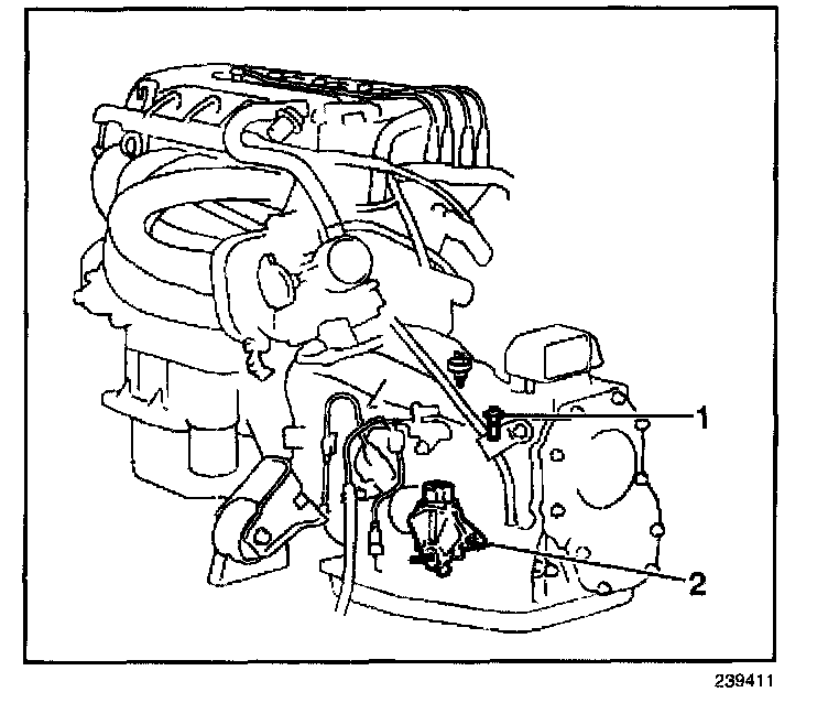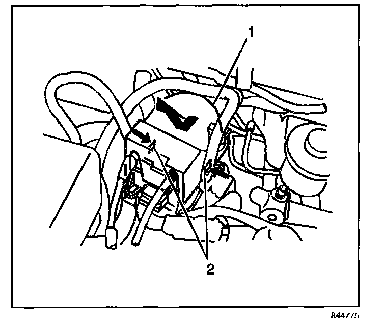 The servo (1) is behind the air cleaner and is mounted to the left strut tower and lower frame rail, the servo consists of a DC servo motor, a worm gear, a throttle angle sensor (potentiometer) and a magnetic clutch. Acting in response to signals from the cruise control module, the servo's DC servo motor actuates the accelerator cable to increase and decrease throttle angle.