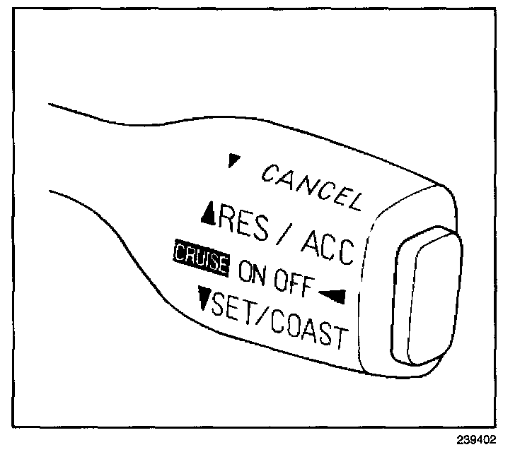 4. Move the cruise control switch downward to the SET/COAST position and release.