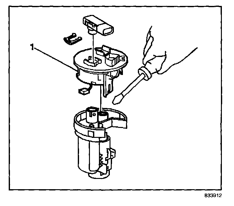 6. Remove the fuel sender top cap (1) from the fuel filter assembly.