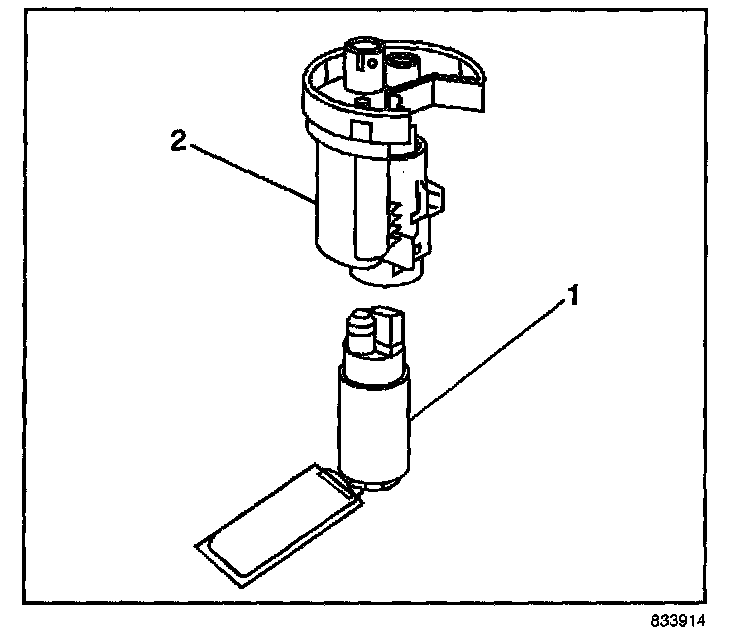 8. Remove the fuel pump (1) from the fuel filter assembly (2).