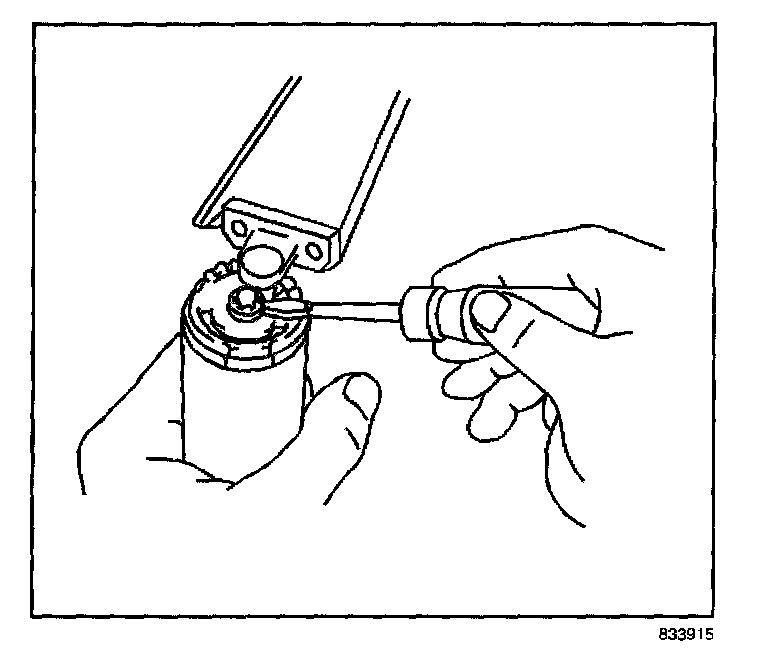 9. Remove the retaining ring for the fuel strainer from the fuel pump.