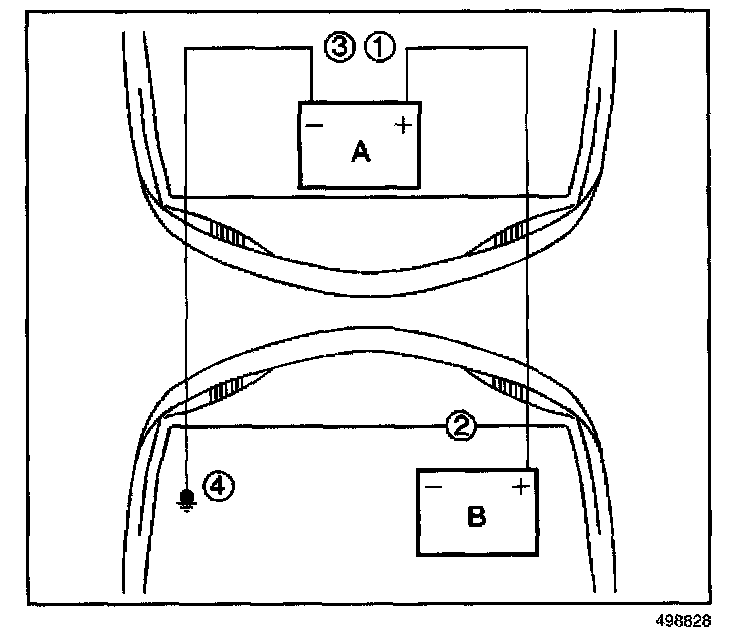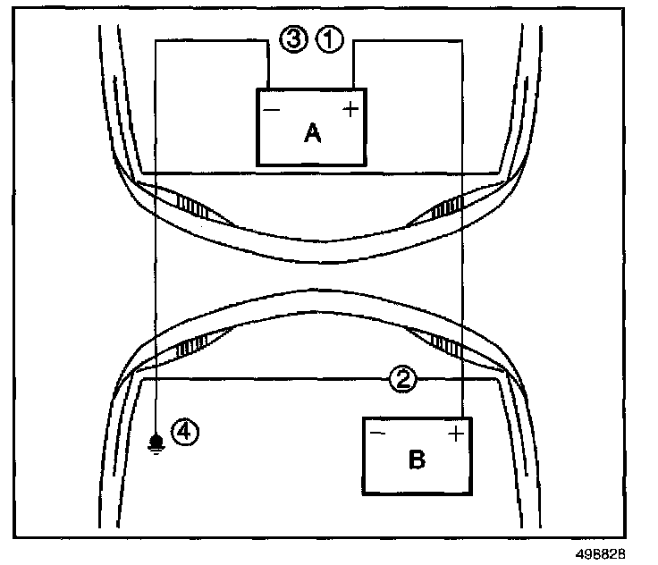 11. The black negative (-) cable must be first disconnected from the vehicle that was boosted (4).