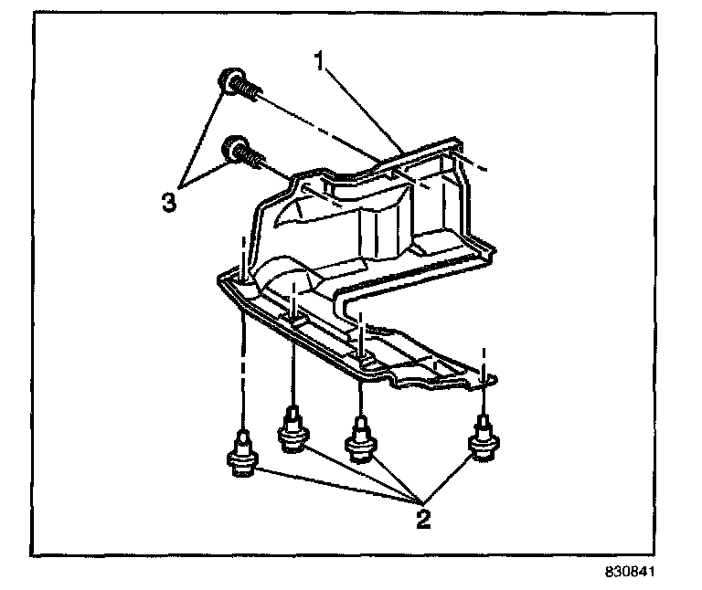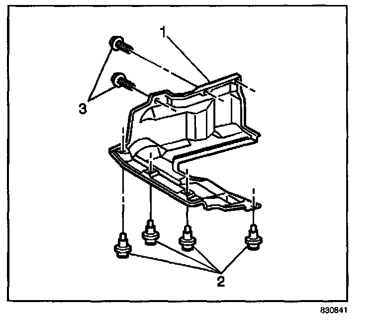 2. Remove the two bolts (3) that secure the stone shield (1).