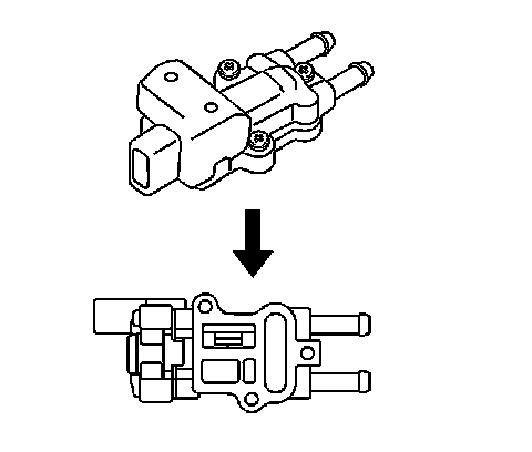 The idle air control (IAC) valve is attached to the underside of the throttle body with 4 bolts. The IAC valve enables the powertrain control module (PCM) to easily control the engine idle speed by precisely metering the engines air intake at closed throttle. The IAC valve opens and closes the idle air bypass passage according to signals from the PCM. The IAC valve contains an engine coolant passage that enables the IAC valve to operate more efficiently at cold temperatures. The PCM determines the correct engine idle speed by using input from various sensors and switches in order to assess the engine status and requirements.