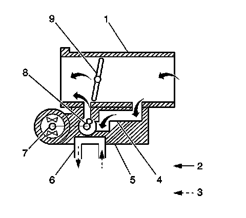 The MAF sensor is a hot-wire design. A platinum hot-wire (2) and a thermistor (3) are located in the intake air bypass passage of the MAF sensor housing. The temperature of the platinum hot-wire is affected by exposure to air flow and by exposure to air temperature. The platinum hot-wire is maintained at a set temperature by controlling the current flow through the wire. The MAF sensor converts the changes in current flow to a voltage signal. The voltage signal from the MAF sensor enables the PCM to detect changes in the air density and changes in air volume.