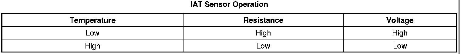 The IAT sensor is a thermistor-a resistor whose resistance changes as a function of temperature. When the temperature is low, the resistance is high. The resistance decreases as the temperature increases. The IAT sensor is a 2-wire circuit with a reference or signal voltage and a ground coming from the PCM.