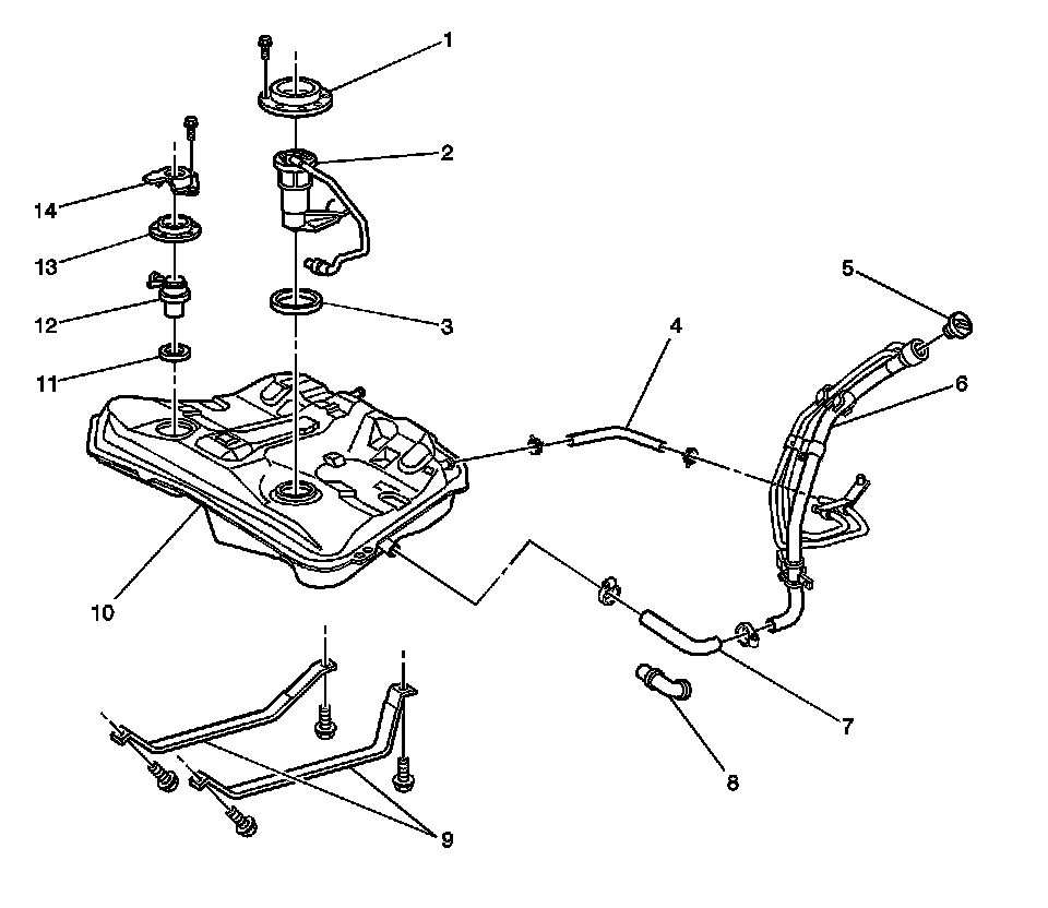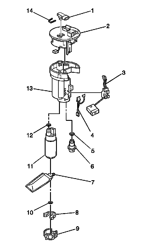 The fuel sender assembly is located in the fuel tank. The fuel sender assembly contains the electric fuel pump, the fuel level sensor, the fuel pressure regulator, and the fuel filter. Most of the fuel sender assembly components can be serviced separately.