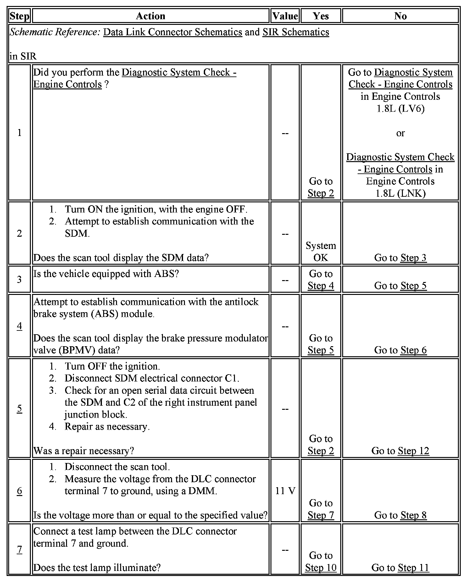 5. This step checks for an open in the serial data circuit between the SDM and the right instrument panel junction block or for a defective SDM.