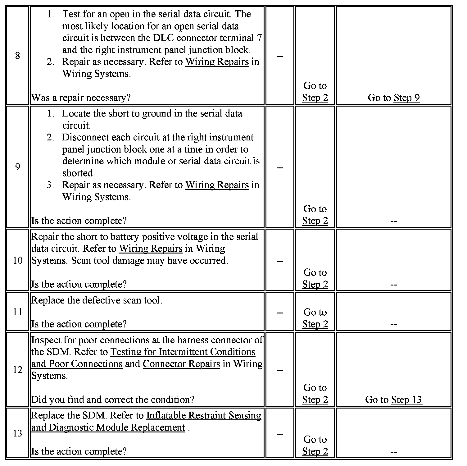 10. The scan tool may be damaged by high current flow on the serial data circuit at DLC terminal 7. Verify the scan tool for proper operation on a known good vehicle that uses terminal 7 of the DLC for serial data communication.
