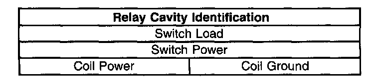 Use the relay cavity table in order to locate the correct cavities to probe during diagnosis. The table layout corresponds to the cavity layout of the relay block.