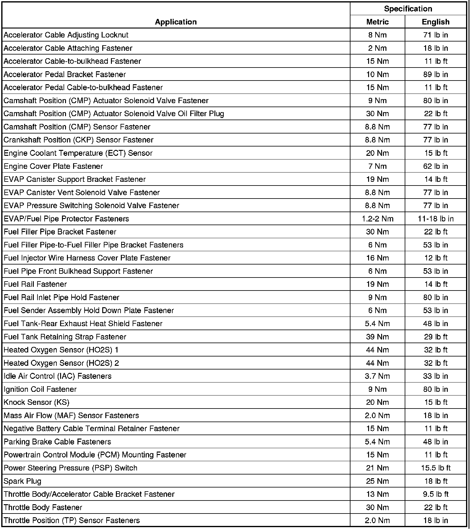Fastener Tightening Specifications
