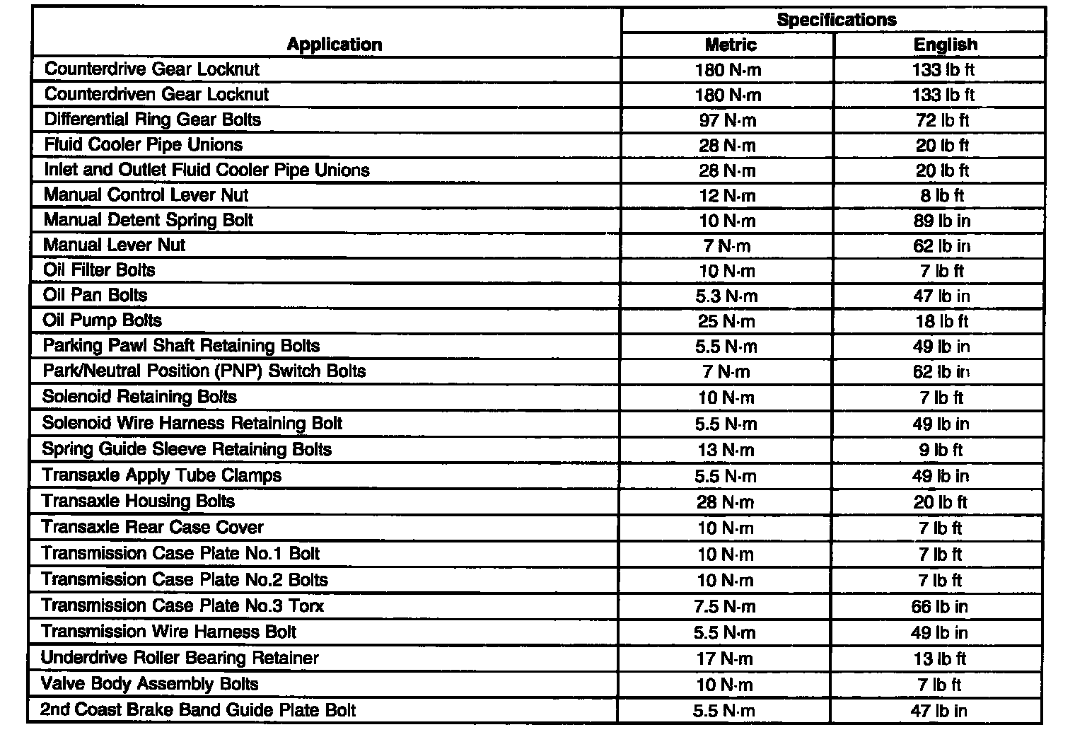 Fastener Tightening Specifications