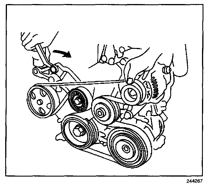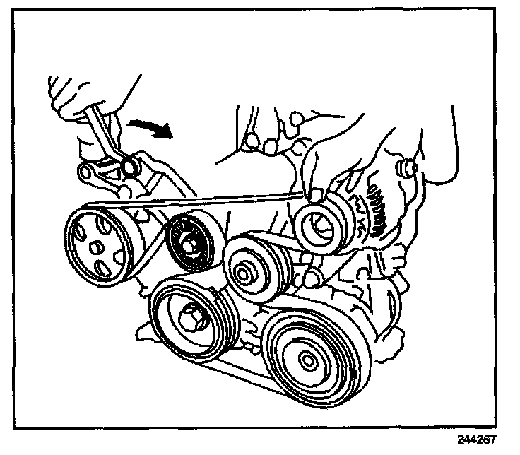 2. Loosen the belt tension by turning the drive belt tensioner clockwise.