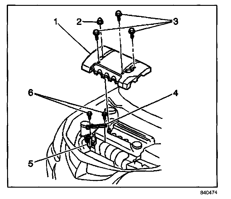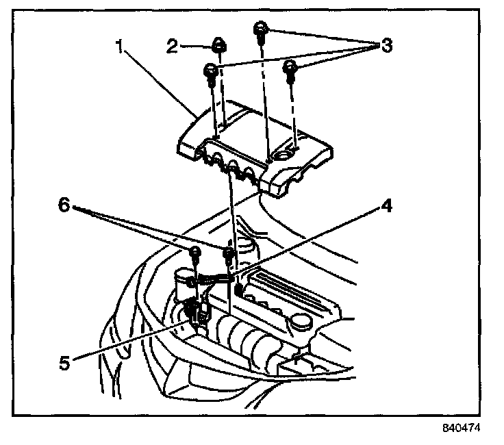 1. Remove the three bolts (3) and one nut (2) form the engine cover (1).