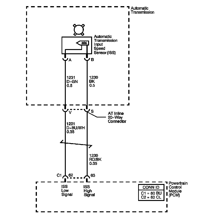 There is a fixed air gap between the sensor and the teeth on the sensor reluctor wheel. The ISS input is used by the PCM in order to control line pressure, TCC apply and release and transmission shift patterns. This sensor is also used to calculate the gear ratios and TCC slippage.