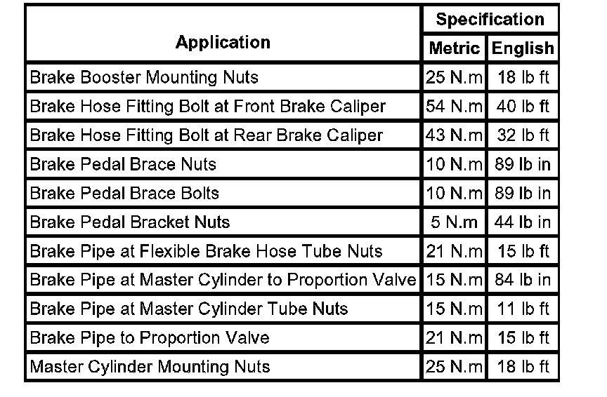 Fastener Tightening Specifications: