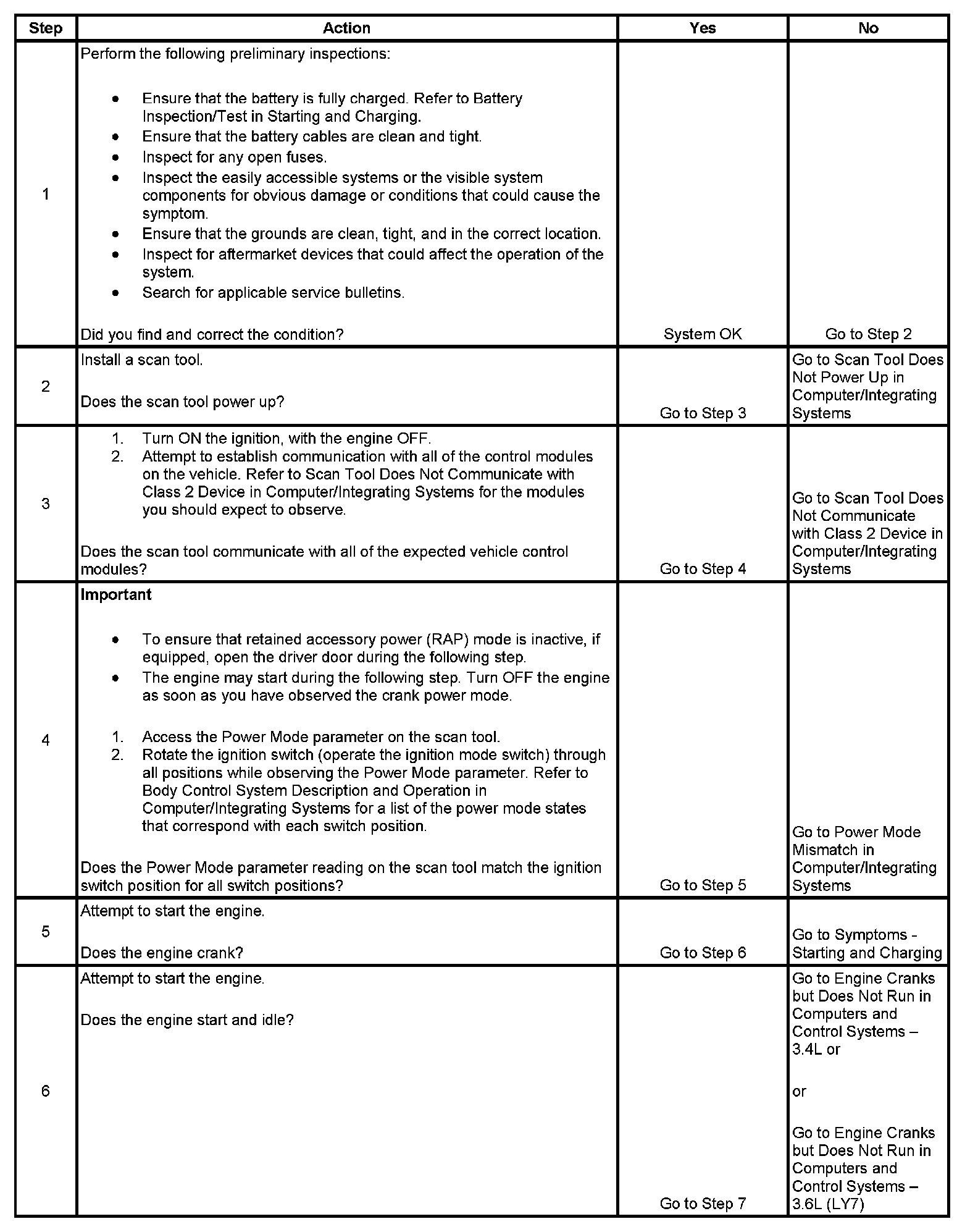 4. A module that is operating in the incorrect power mode based on key position may cause other vehicle symptoms and/or DTCs to set. The link to Power Mode Mismatch will correct the condition before checking for module DTCs or symptoms.