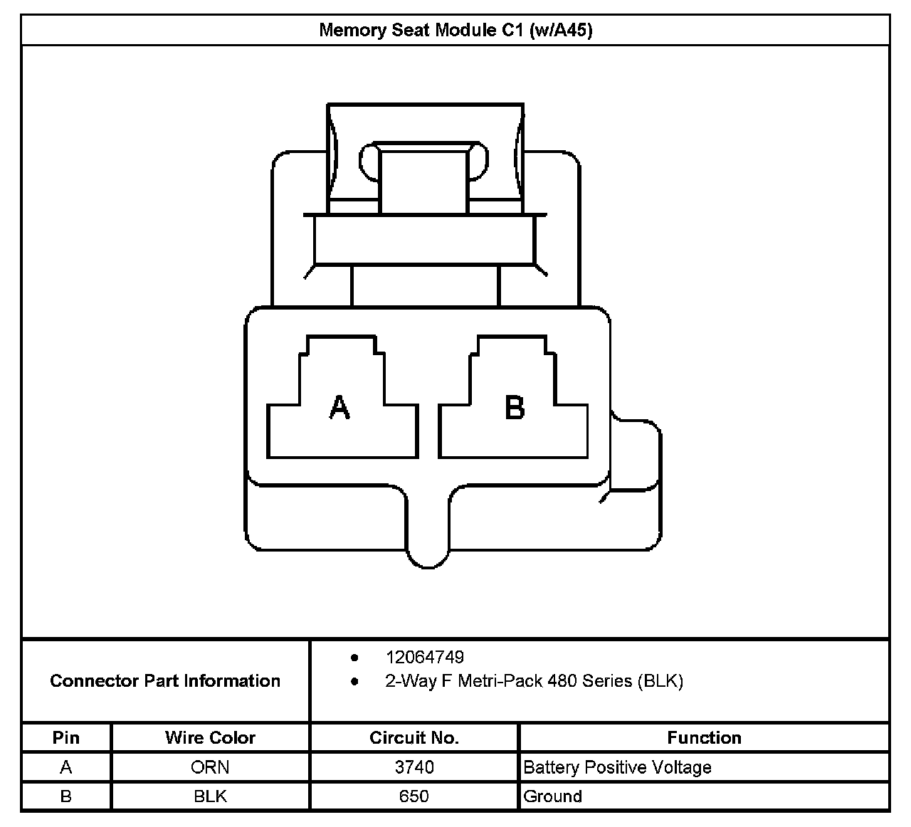 Memory Seat Module C1 (With RPO Code A45):
