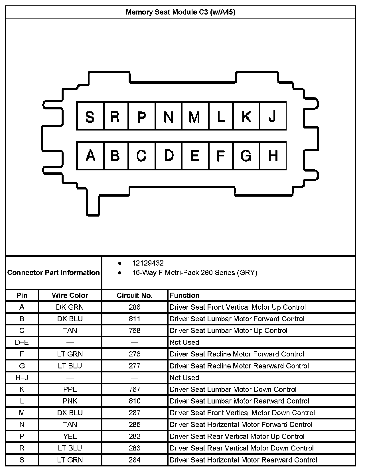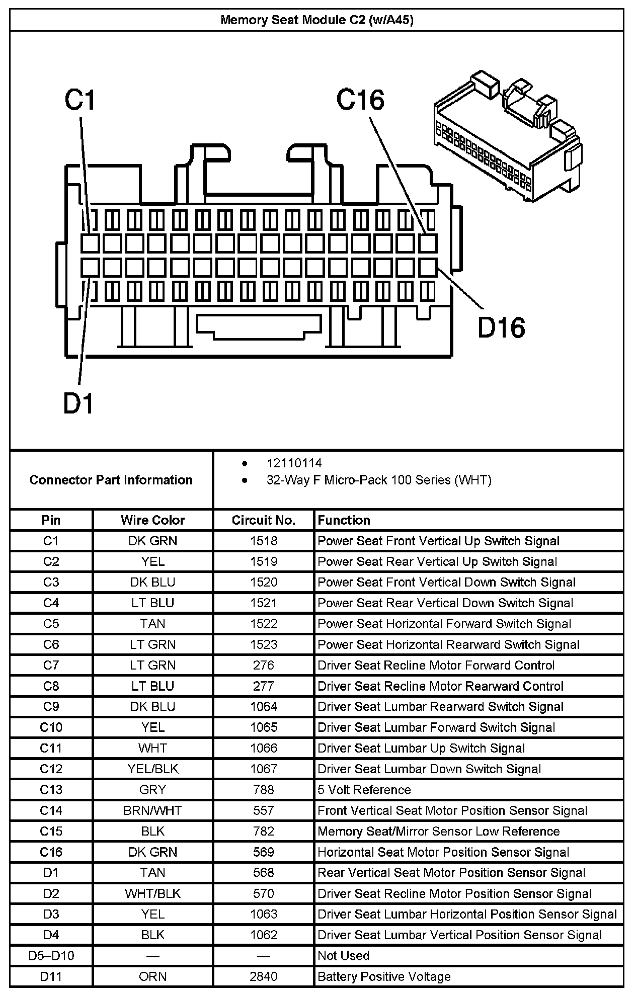 Memory Seat Module C2 (With RPO Code A45) Part 1: