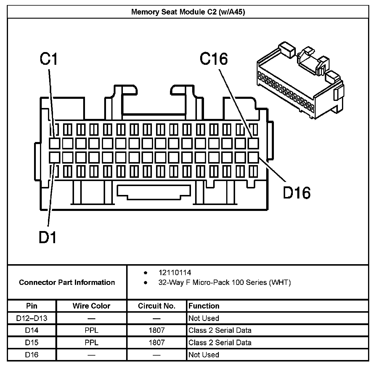 Memory Seat Module C2 (With RPO Code A45) Part 2: