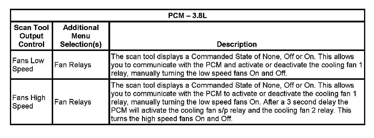 Scan Tool Output Controls - PCM - 3.8L: