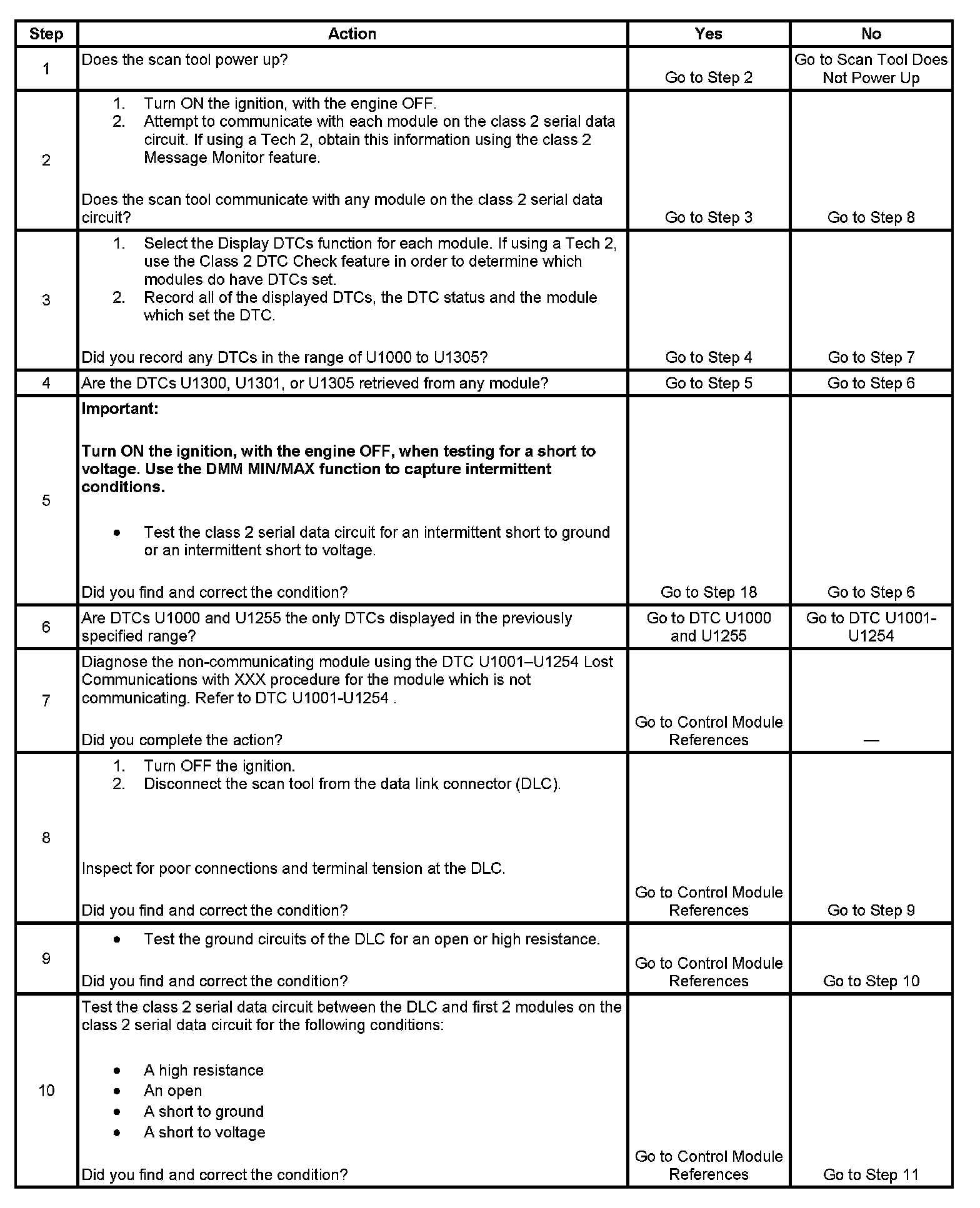 - An internal condition within a module on the class 2 serial data circuit that causes a short to voltage or ground.