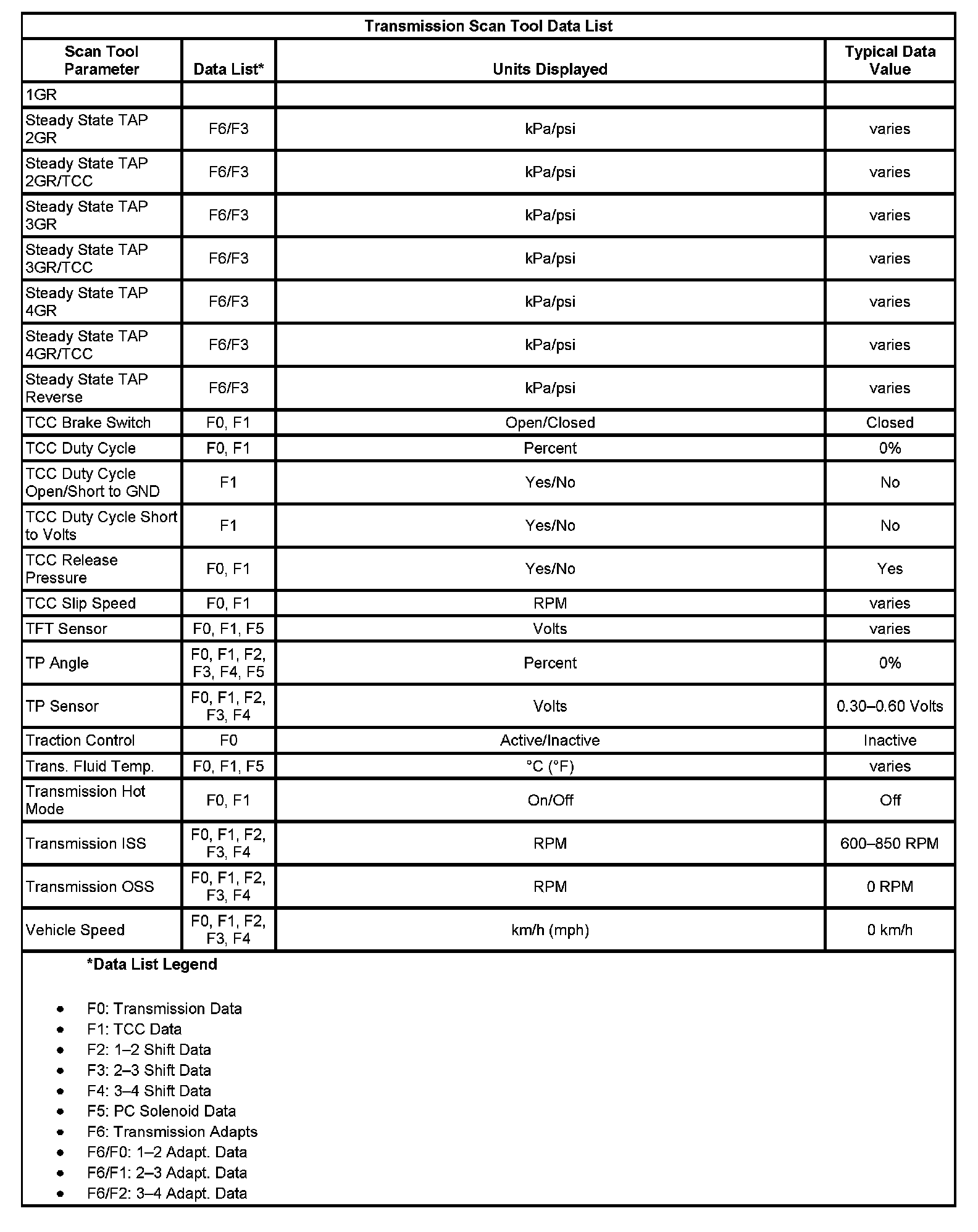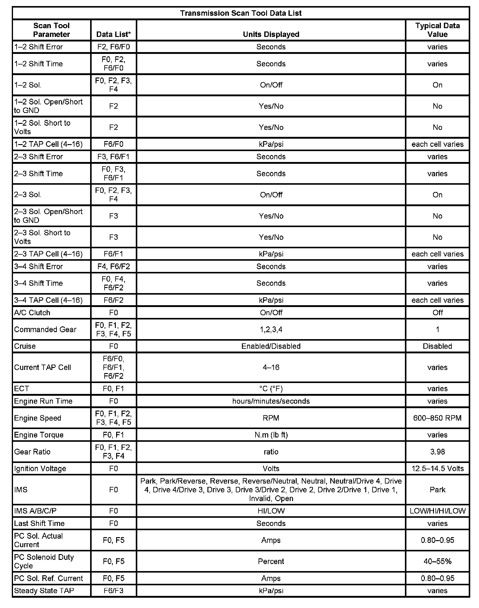 Only the parameters listed below are used in this manual for diagnosing. If a scan tool displays other parameters, the values are not recommended by General Motors for use in diagnosis.