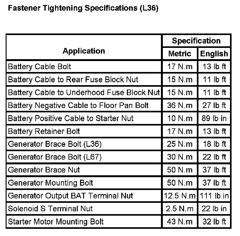 Starting and Charging: Specifications