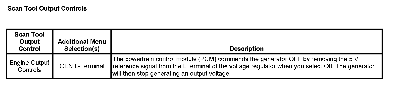 Scan Tool Output Controls: