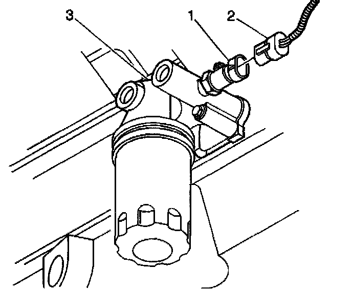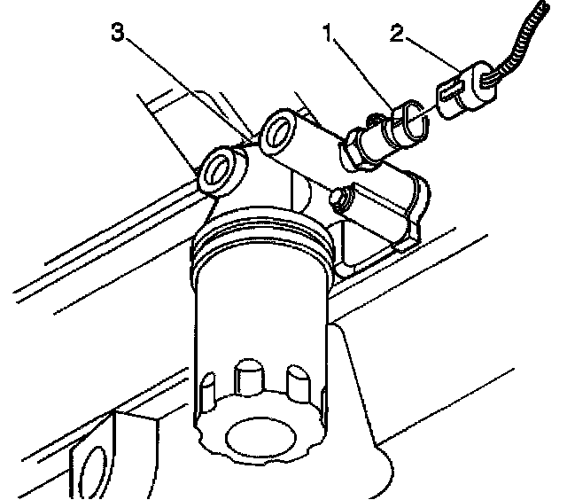 3. Remove the engine oil pressure switch (1) from the oil filter adapter (3).