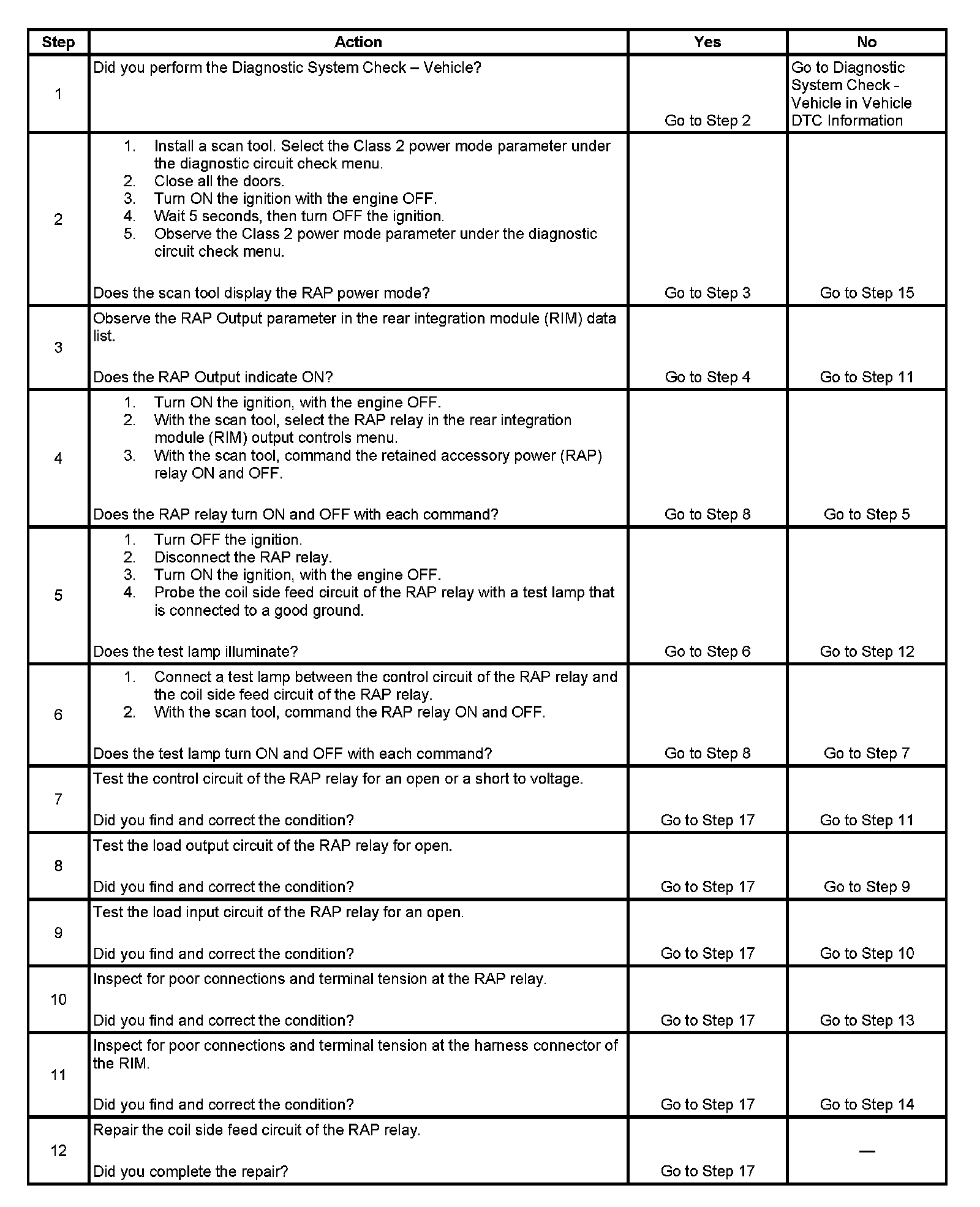 Retained Accessory Power (RAP) Inoperative