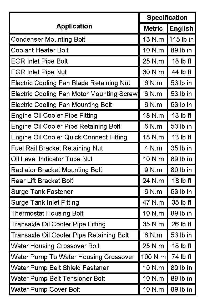 Fastener Tightening Specifications