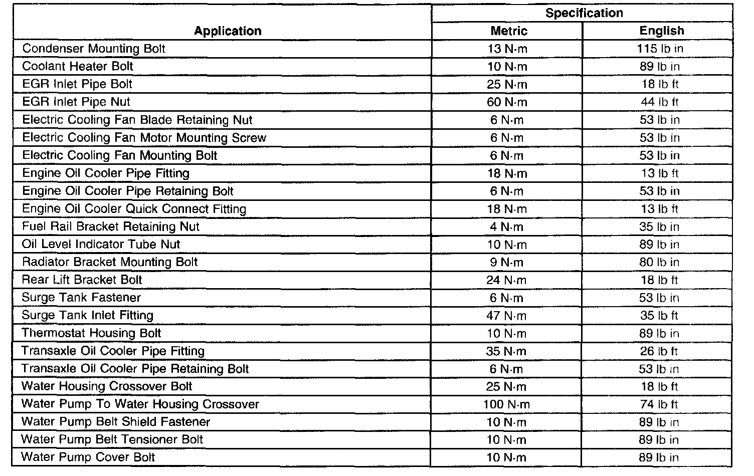 Torque Specifications