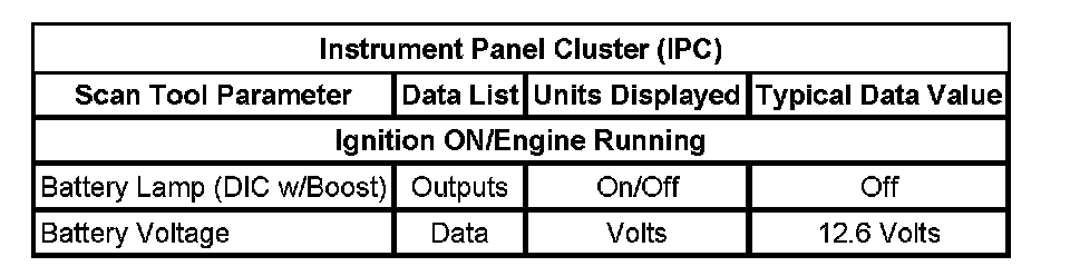 Normal Scan Tool Data Values - Instrument Panel Cluster (IPC)