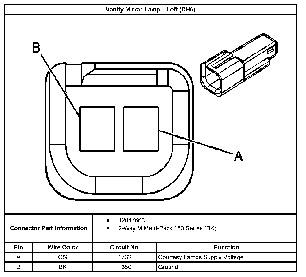 Vanity Mirror Lamp - Right (DH6):