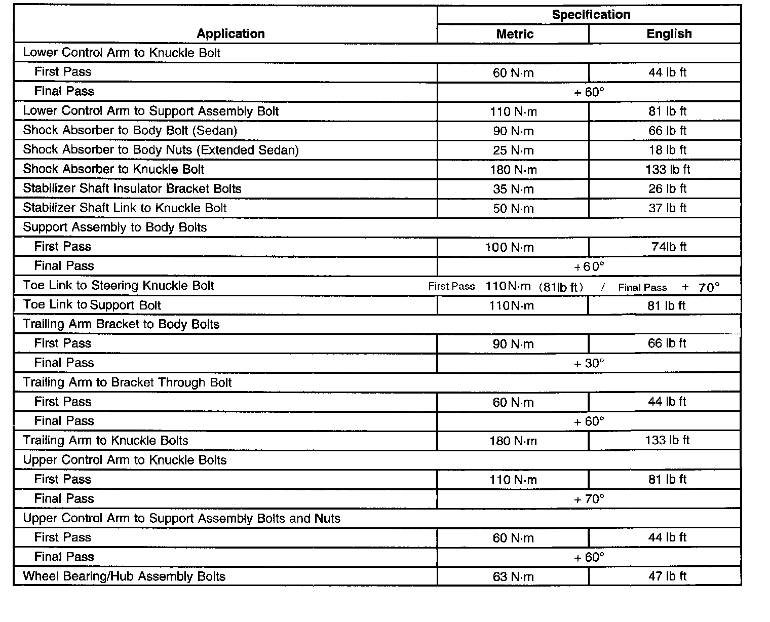 Torque Specifications: