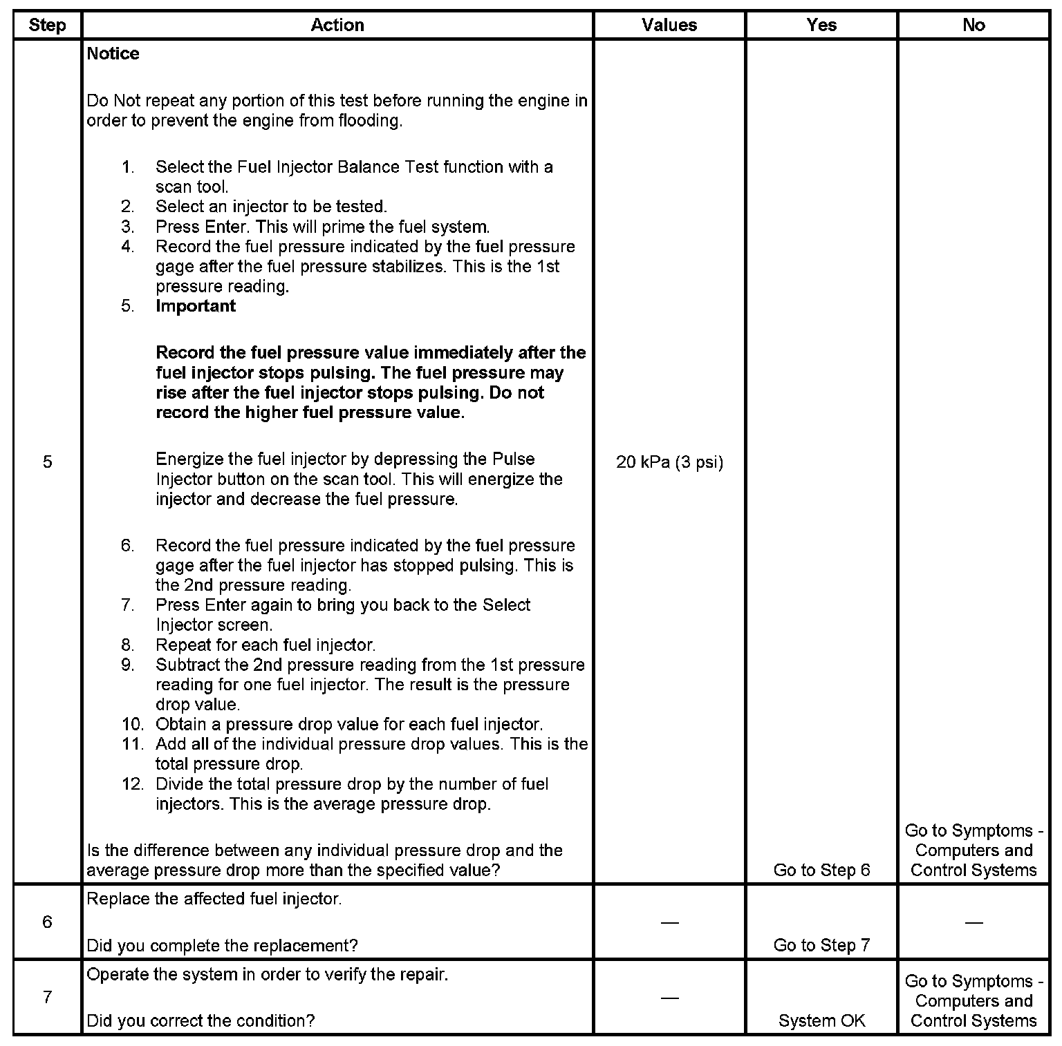 The scan tool is first used to energize the fuel pump. The scan tool is then used to pulse each injector for a precise amount of time, allowing a measured amount of fuel into the manifold. This causes a drop in system fuel pressure that can be recorded and used to compare the flow through each injector.