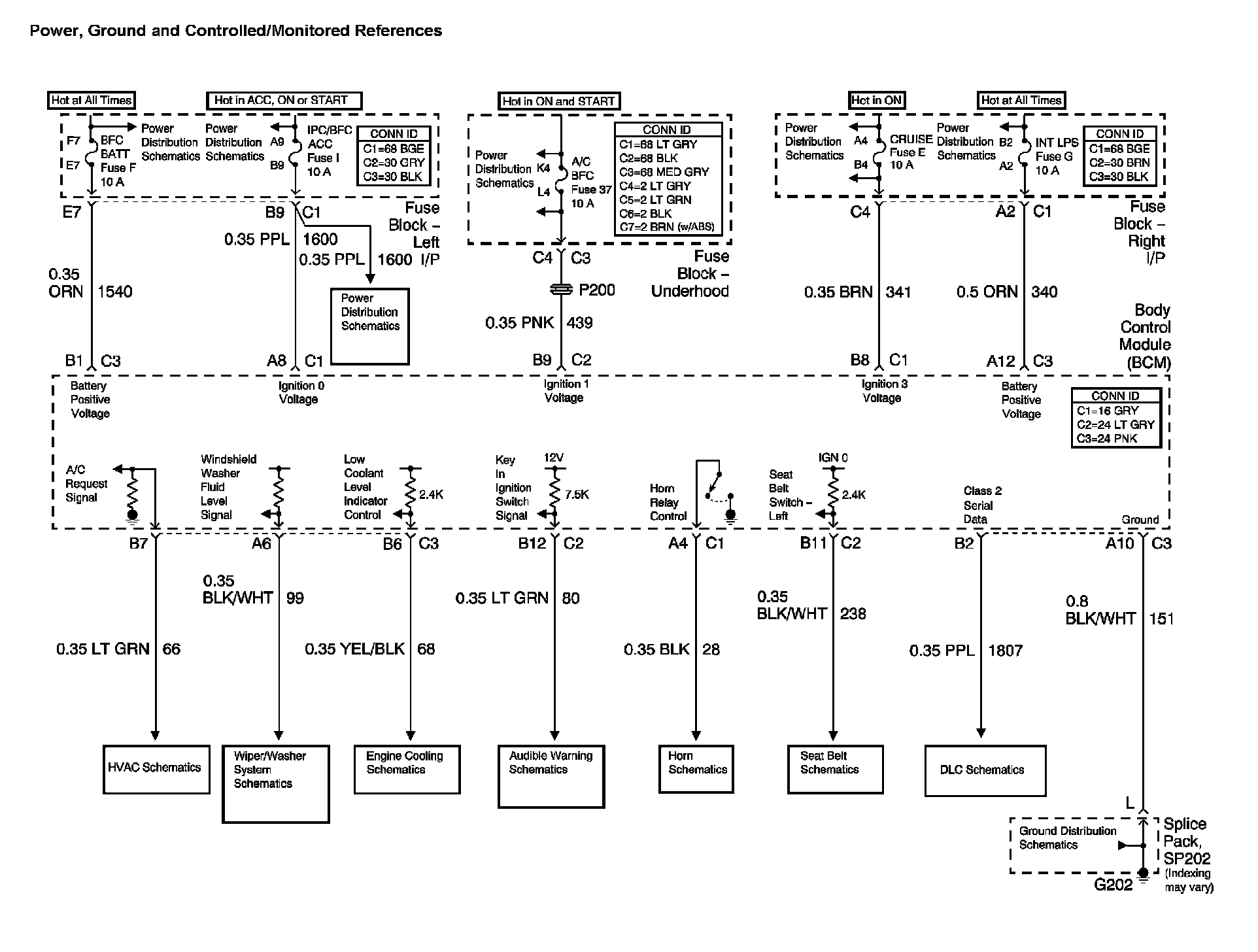 Location: The locations for the Connectors, Grounds, Splices, and grommets shown within these diagrams can be found via their numbers at vehicle locations. Locations