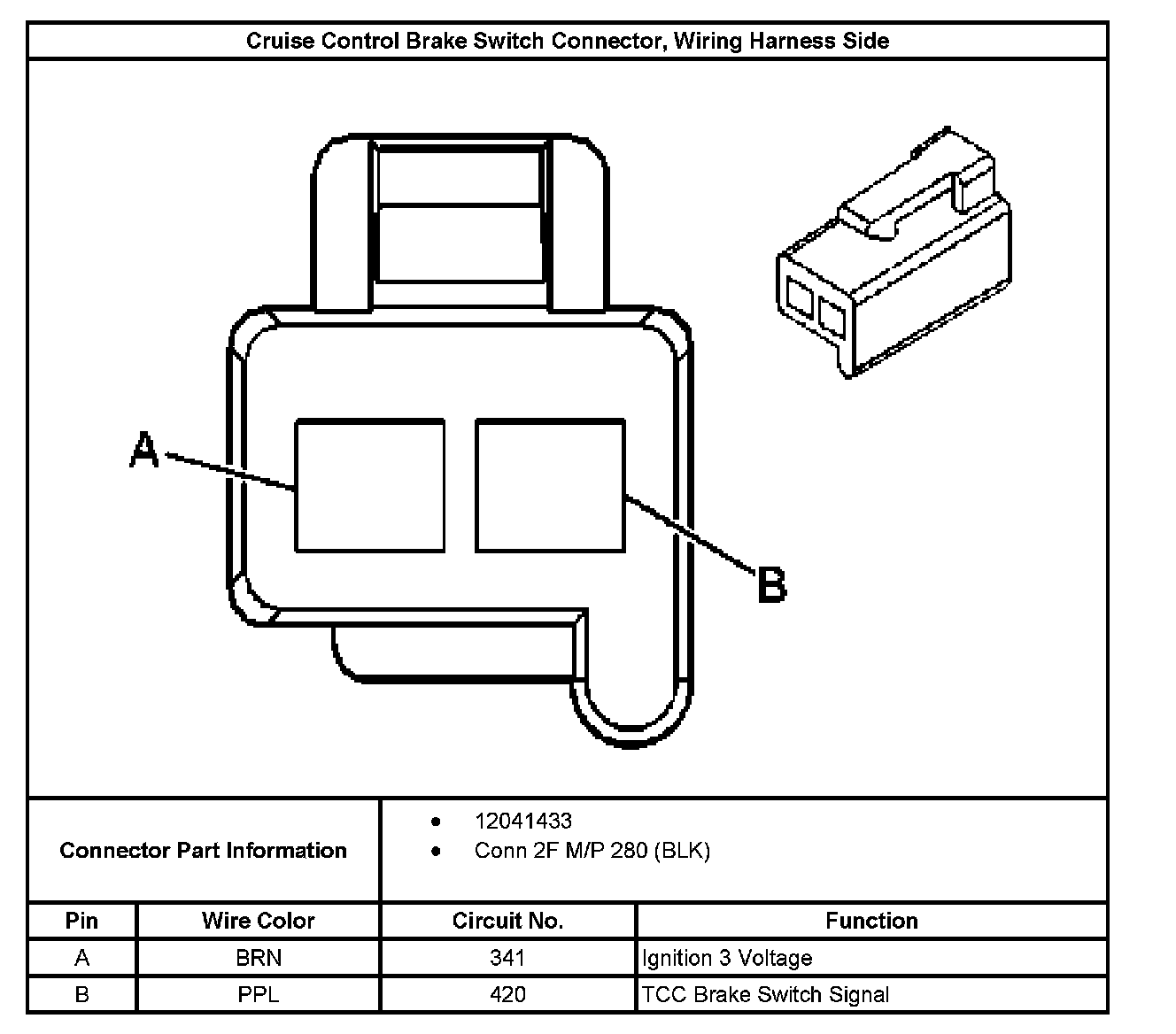 Cruise Control Brake Switch Connector, Wiring Harness Side: