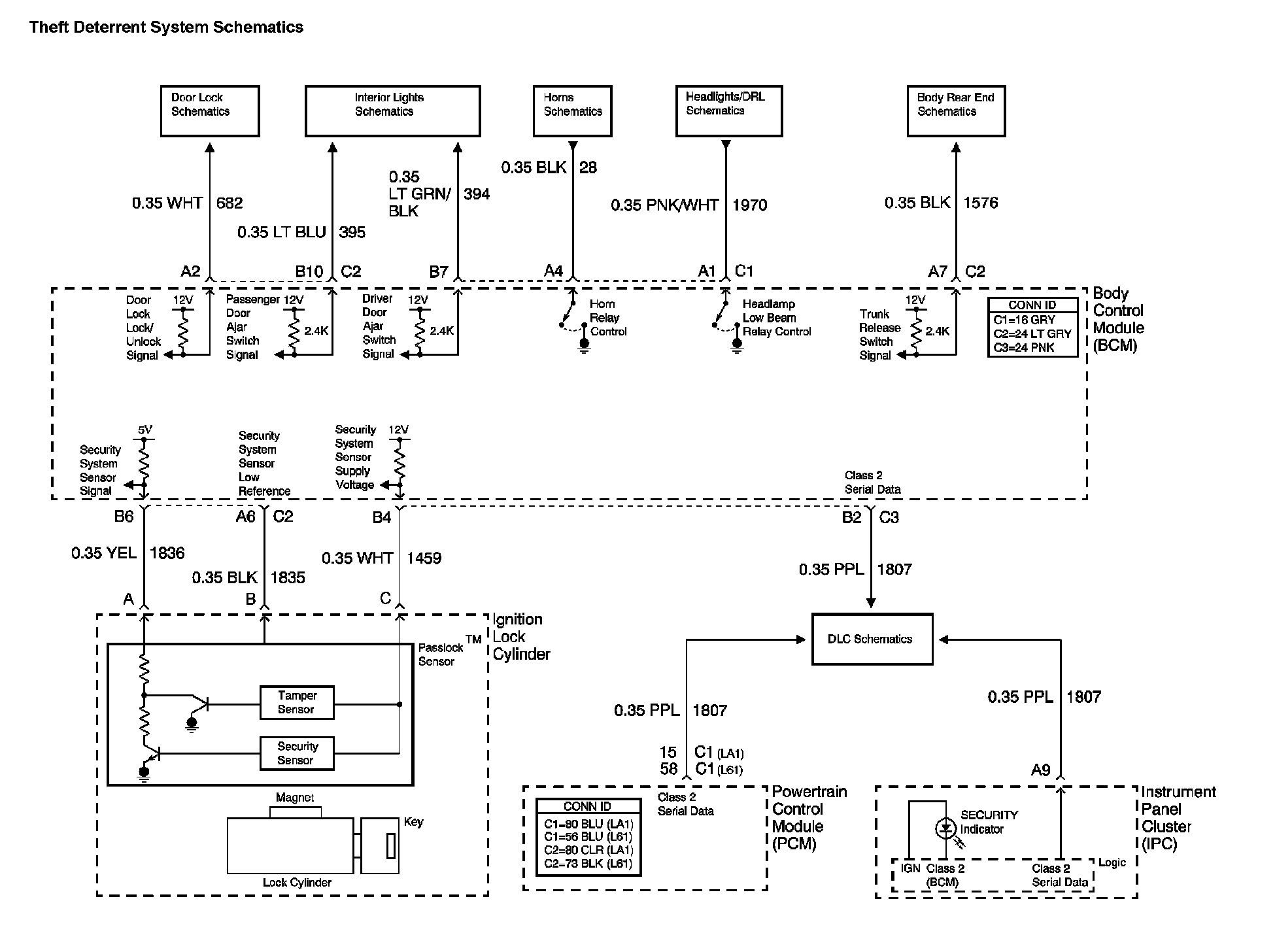 The locations for the Connectors, Grounds, Splices, and grommets shown within these diagrams can be found via their numbers at vehicle locations.
