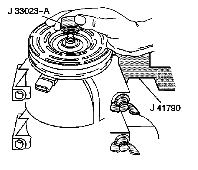2. Install the J 33023-A onto the front head of the compressor.