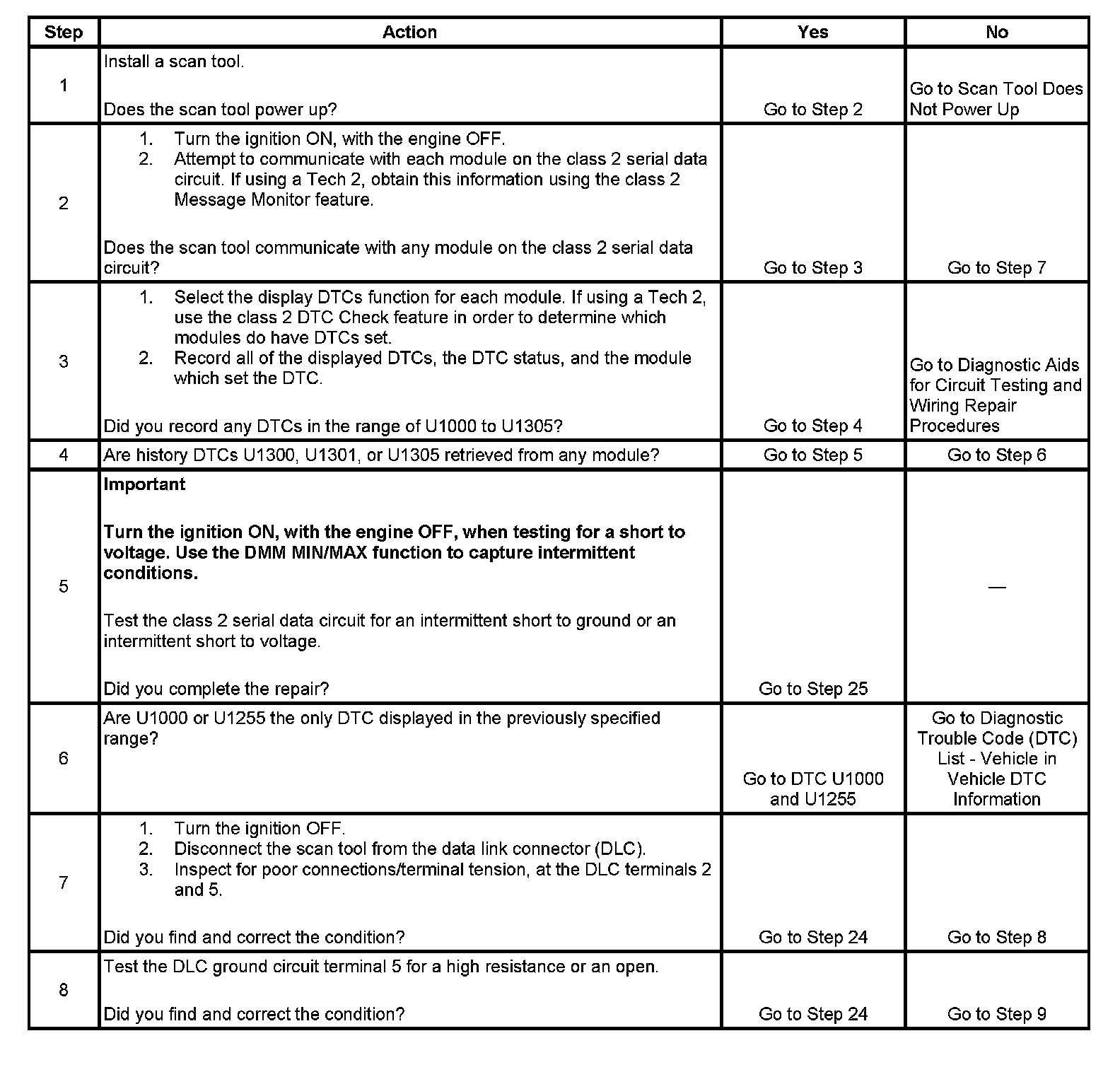 20. This is an active test of the class 2 serial data circuit with the VTD, if the vehicle is equipped, isolated from the communication bus. If you are able to communicate with the class 2 serial data circuit during this step, the VTD should be replaced.