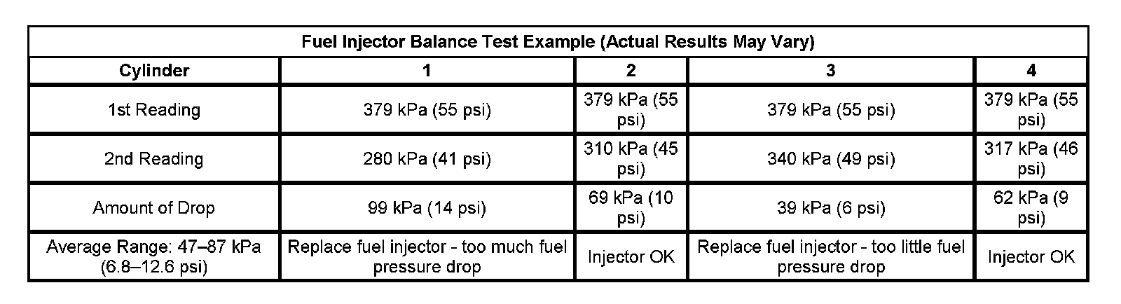 Fuel Injector Balance Test Example (Actual Results May Vary):