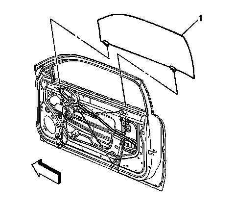 6. Remove the front door window (1) from the front door.