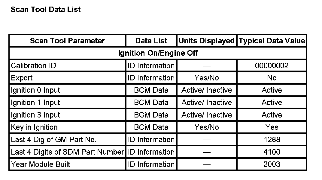Scan Tool Data List: