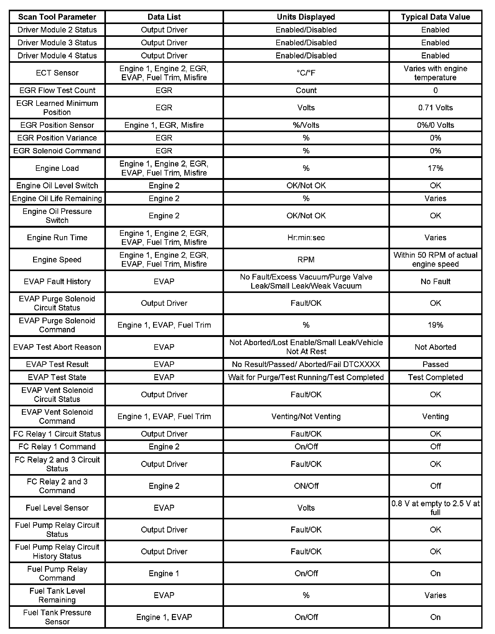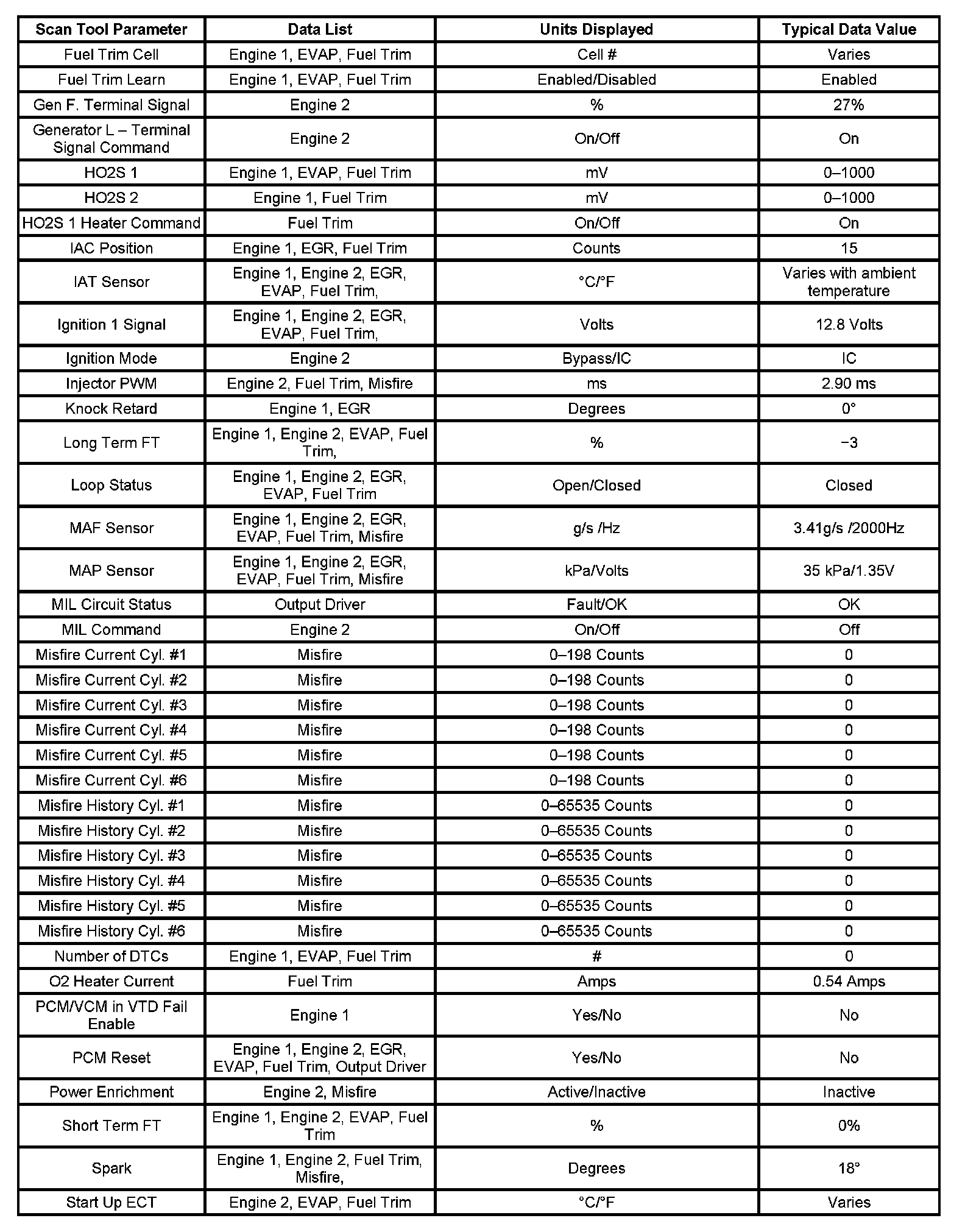 For scan tool parameter definitions, refer to Scan Tool Data Definitions. Scan Tool Data, Normal Values and Definitions