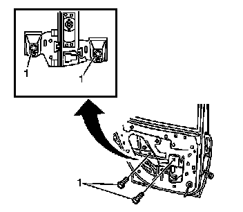 7. Lower the rear door window far enough in order to gain access to the bolts (1) that attach the window to the regulator.
