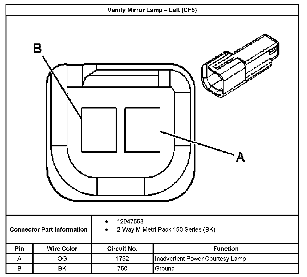 Vanity Mirror Lamp - Right (With RPO Code CF5):